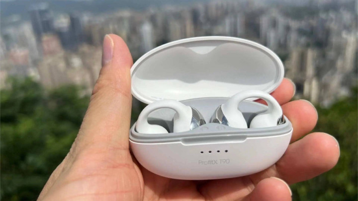 骨聆ProfitX采用U型夹耳结构设计,整体贴合度较高,耳挂部分韧性不错,运动时固定效果明显。即使跑步、跳操或户外骑行,也不容易松动。但单只重量约7g,相对偏重,长时间佩戴后耳朵边缘会有一定负担感。